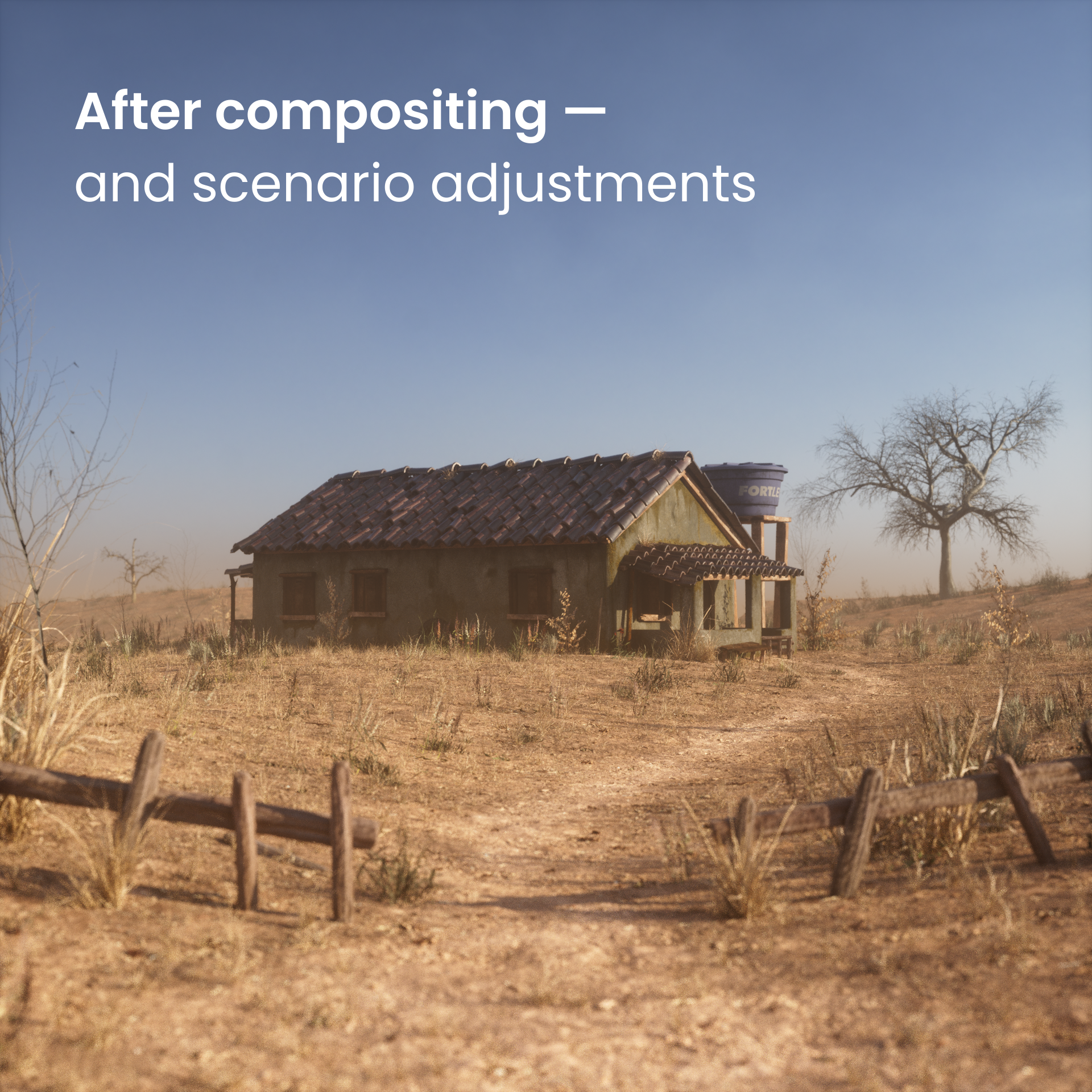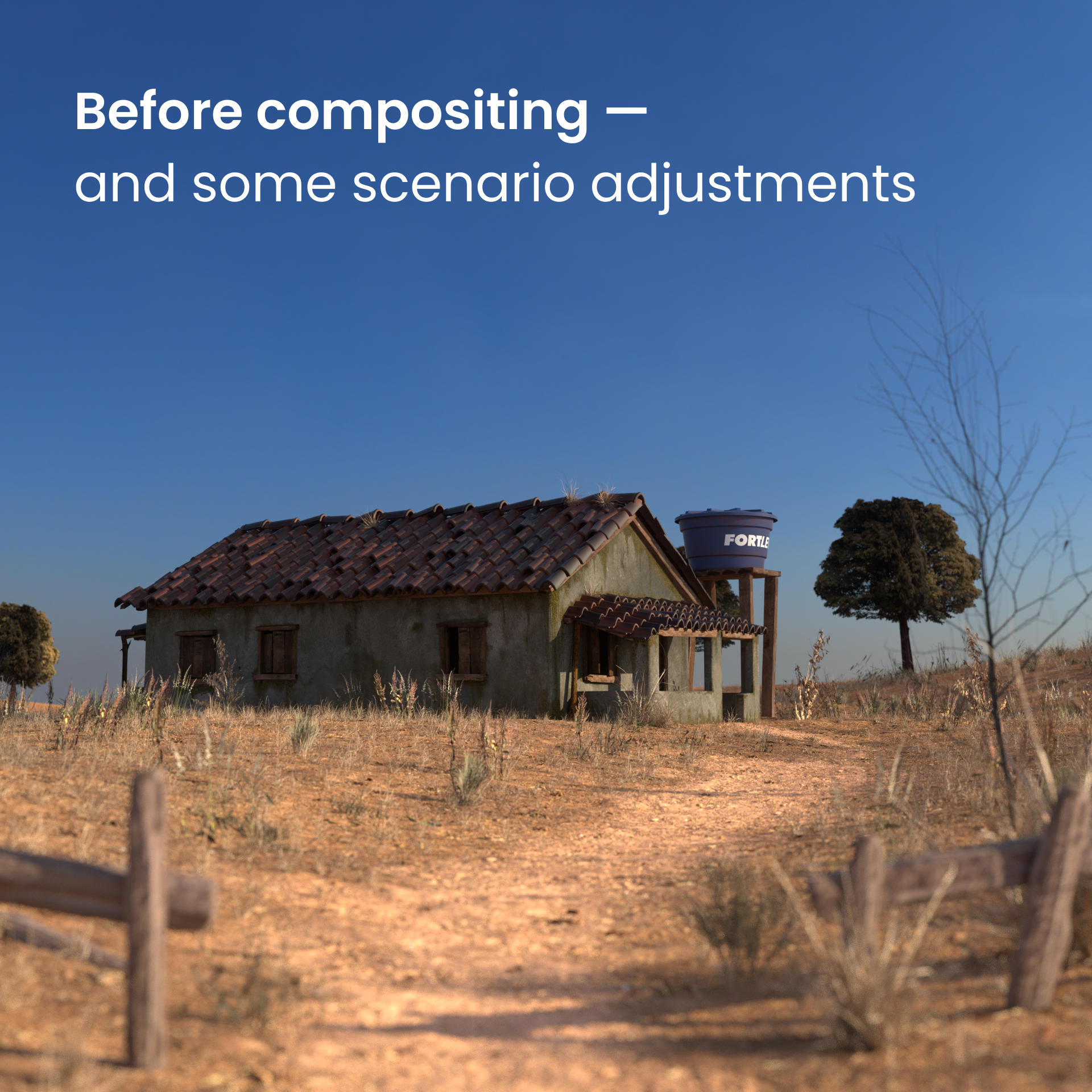 That’s basically it. All the assets in this scene were modeled by me, except for the trees, and it was a fun journey of about a month and a half. Along the way, I learned more about the OctaneRender shading process and felt increasingly comfortable with each step.