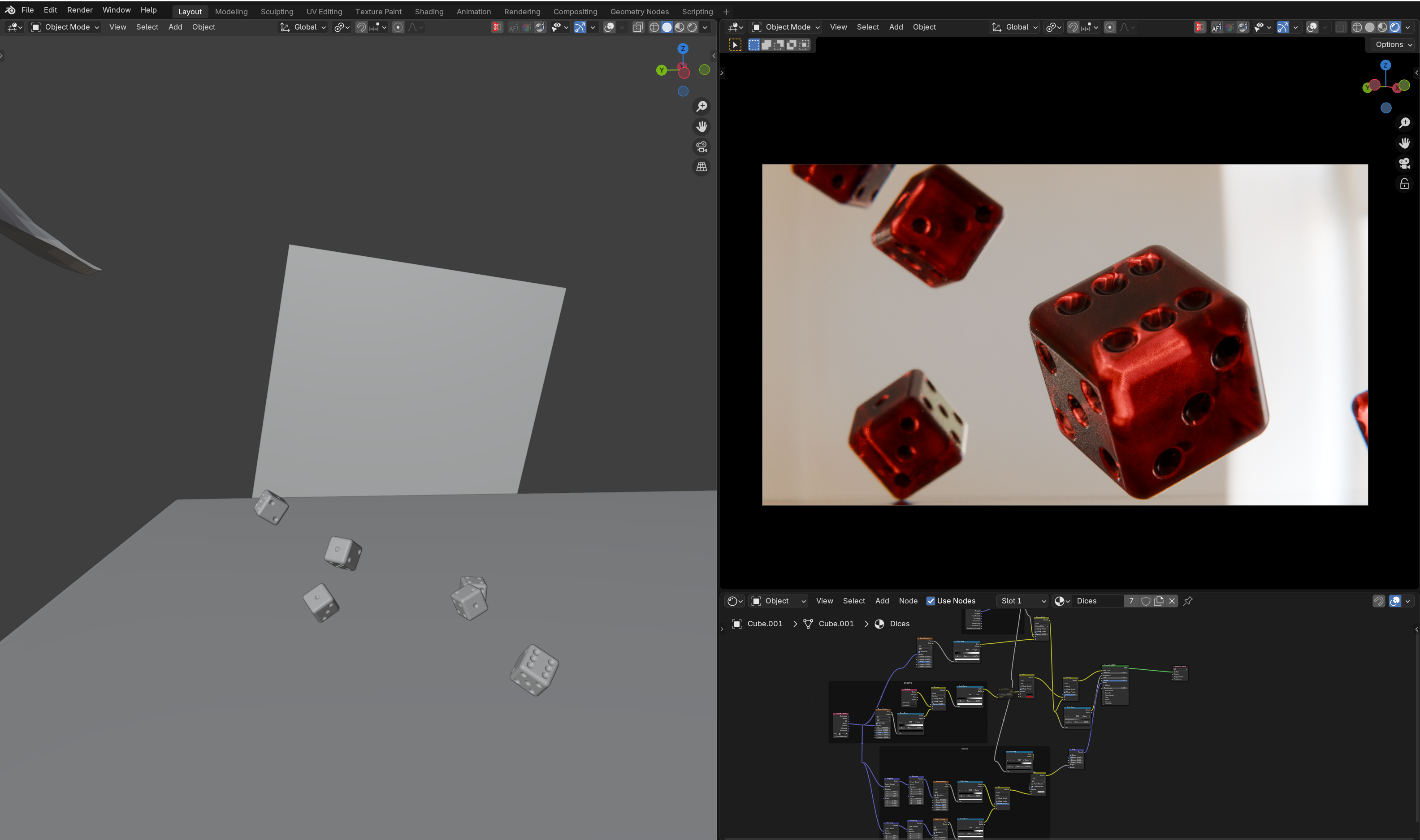 I used Blender for modelling the dices, and the Cycles Render to dive into the shading process.